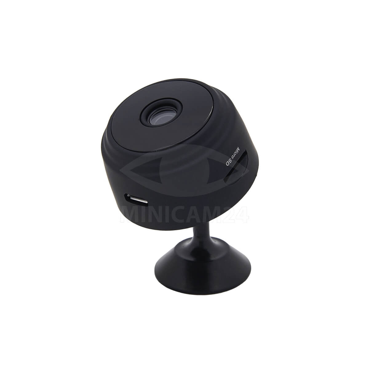 Миниатюрная круглая камера на цанговом держателе с возможностью установки на плоскость в любом месте. Разрешение камеры 1920х1080 точек. Широкоугольный объектив с углом обзора 150 градусов оборудован светодиодами инфракрасной подсветки для ночной съемки. Непрерывная съемка до 60 минут. Видеофайлы сохраняются на карте памяти объемом до 64 Гб, либо при помощи встроенного модуля Wi-Fi могут сохраняться в облачном хранилище под управлением приложения V380 Pro. Встроенная литиевая батарея.
