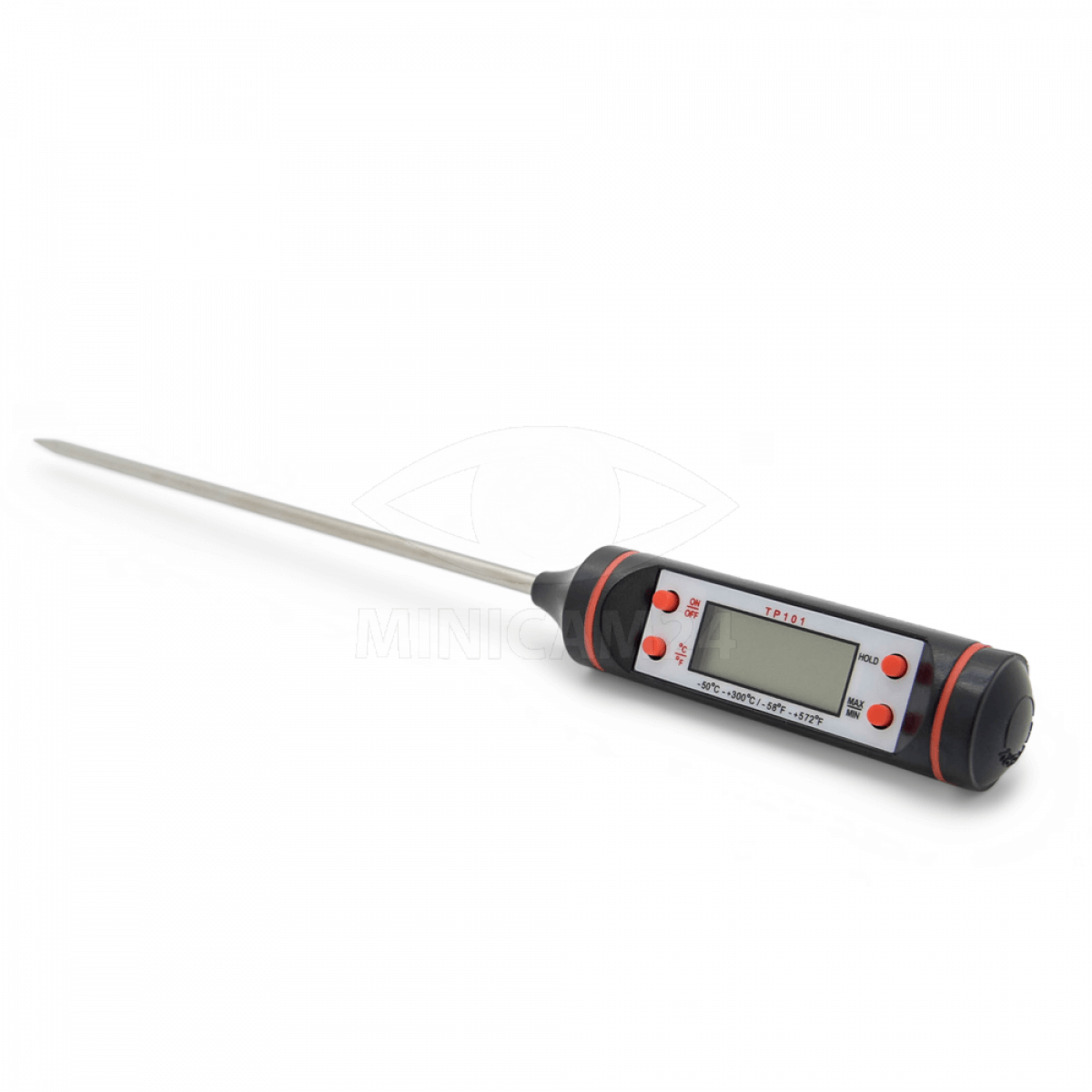 Термометр для мяса MeatHeat-101 - специальный прибор, который должен быть оснащена любая профессиональная кухня, он также может успешно применяться и на домашней кухне. Благодаря такому устройству, вы сможете контролировать степени приготовления мяса, при соблюдая нужную технологию и режимы. Измерение температуры и определение степени прожарки производится с помощью специального датчика, который погружается в кусок мяса на нужную глубину. Все полученные данные выводятся на монитор. При необходимости вы можете установить удобные для вас единицы измерения, а также вид мяса и степень его прожарки. Для питания термометра используются сменные батарейки.